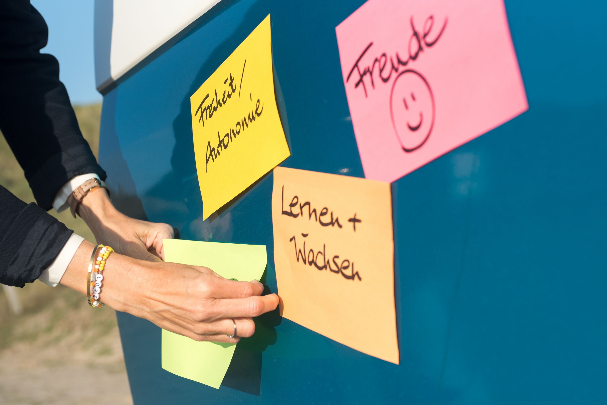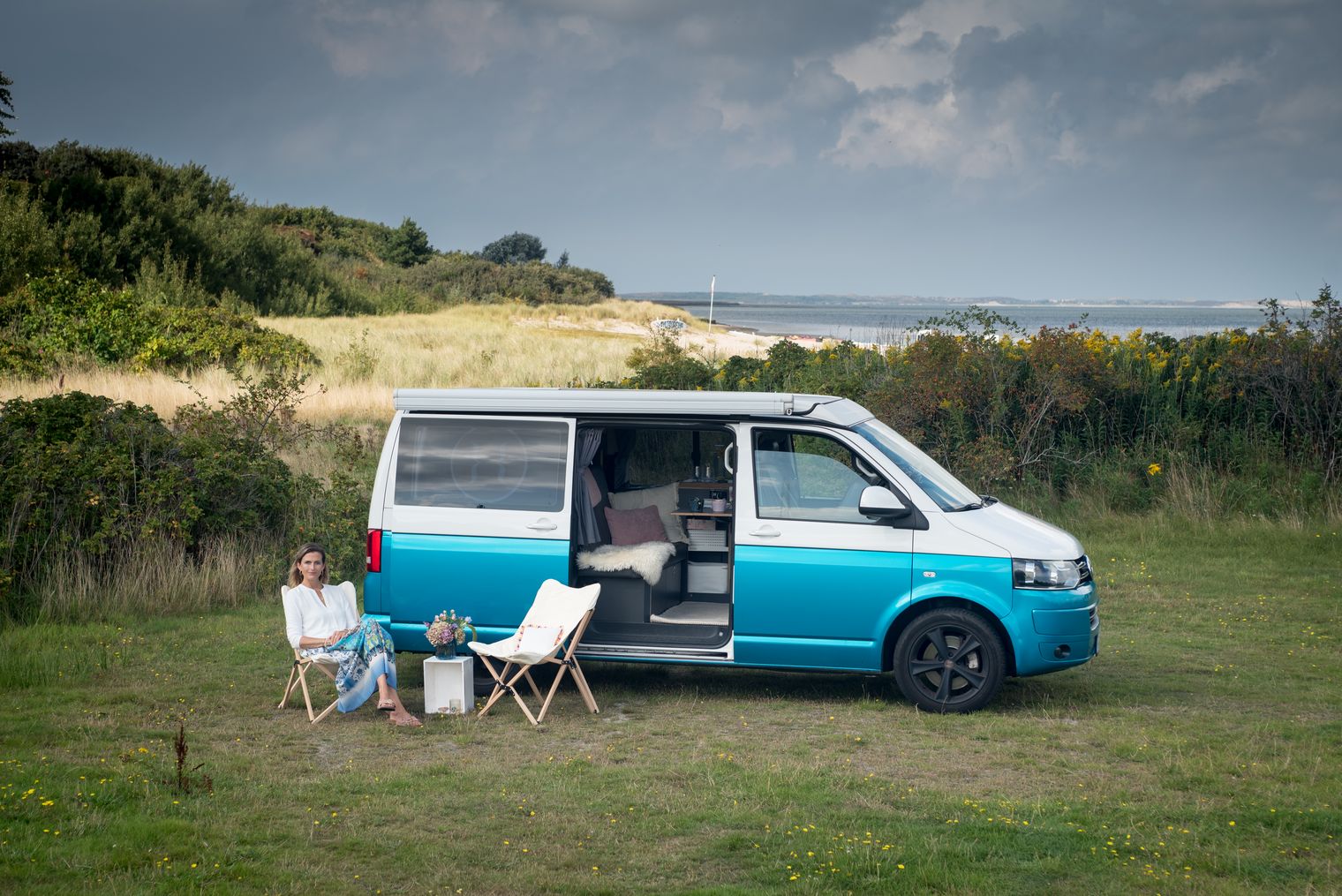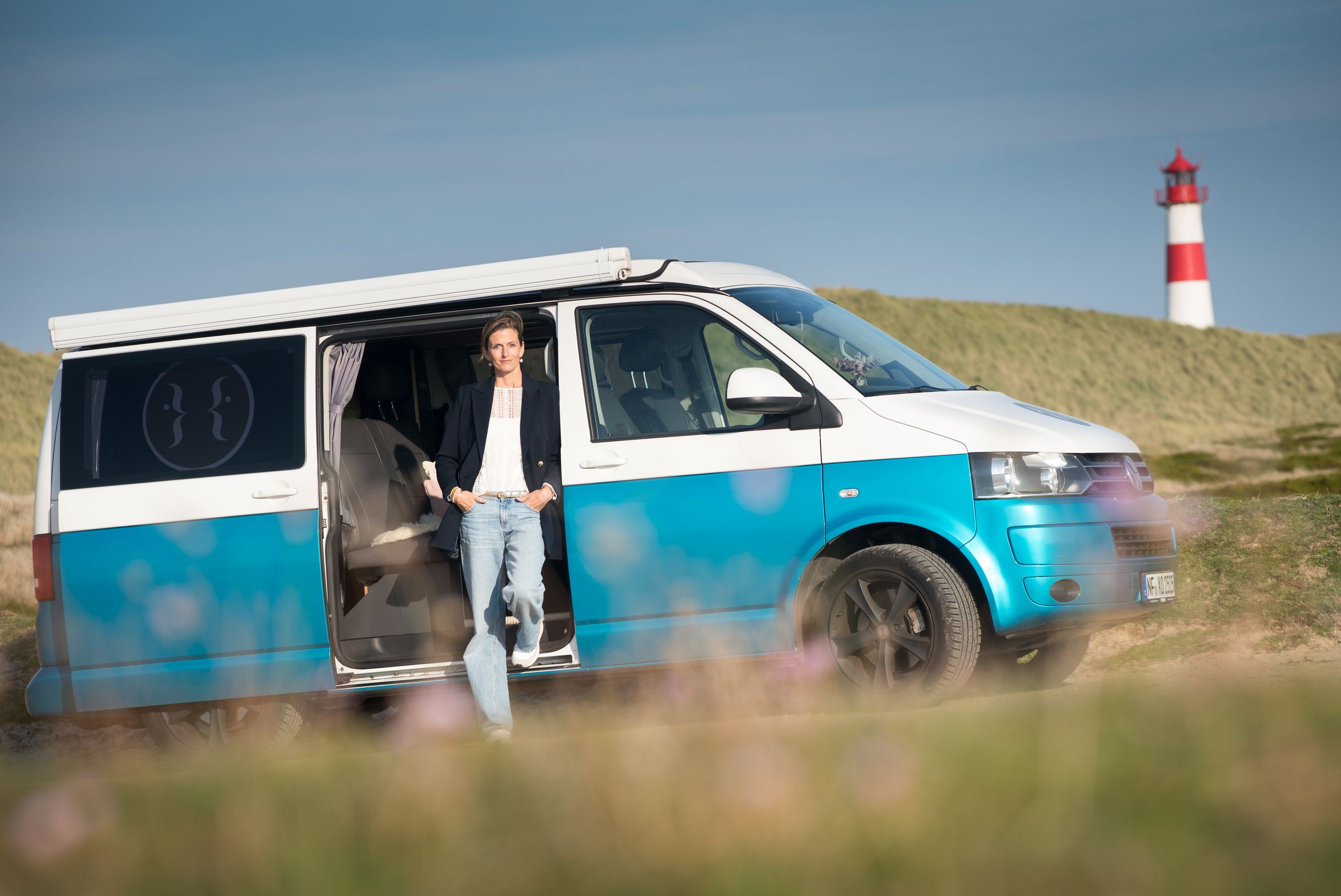 So entwickelte sich auch dieses besondere Konzept rund um ihren Coaching Van. In Frankreich, bei Offsites mit Freundinnen, entstand aus einem gemeinsamen Gespräch ein Gefühl und schließlich eine Idee, die auf Sylt Fuß fasste. „‘Das habe ich noch nie jemandem erzählt‘, sagte eine Freundin zu mir während einer spontanen Session in meinem Bus“, erinnert sich Simone. „Dieser Moment in diesem Setting fühlte sich anders an, als in meinem üblichen Indoor-Coaching. Irgendwie intimer, noch lockerer.“ In jenem Augenblick in Frankreich erlebte sie, was dieser Raum sein kann: eine kleine, vertrauliche Kapsel. Heute steht dieser Van hauptsächlich auf Sylt. Liebevoll gestaltet, mit Decken, frischen Blumen, Wärme und einer Atmosphäre, die sofort etwas öffnet.
