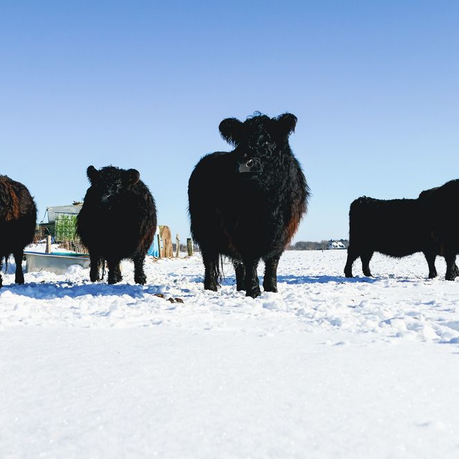Mindestens zweimal täglich schaut der Keitumer insbesondere bei eisigen Temperaturen nach ihnen, kloppt den zugefrorenen Wassertrog frei und versorgt die trächtigen Tiere mit Heu. Im Frühjahr erwarten sie ihre Kälber, ihre Bäuche sind bereits kugelrund. Dass die Kalbung unter freiem Himmel erfolgt, ist Teil der Zuchtphilosophie der Andersens. Sie sorgen dafür, dass die Galloways ein stressfreies und glückliches Leben führen und die Mutterkuhhaltung auf natürlichste Art erfolgt. Für die Familie ist das die Grundlage für Fleisch, hinter dem sie mit gutem Gewissen stehen kann.