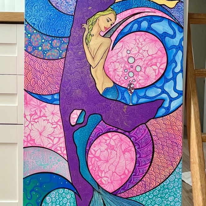 Aufgewachsen an den Stränden von Hawaii, Fuerteventura und Sylt, begann sie schon früh zu malen. Ihre Werke entstehen oft direkt an den schönsten Surfspots der Welt. Mit Acrylstiften, leuchtenden Farben und fließenden Linien entwickelt sie ihren ganz eigenen Pop-Art-Stil.