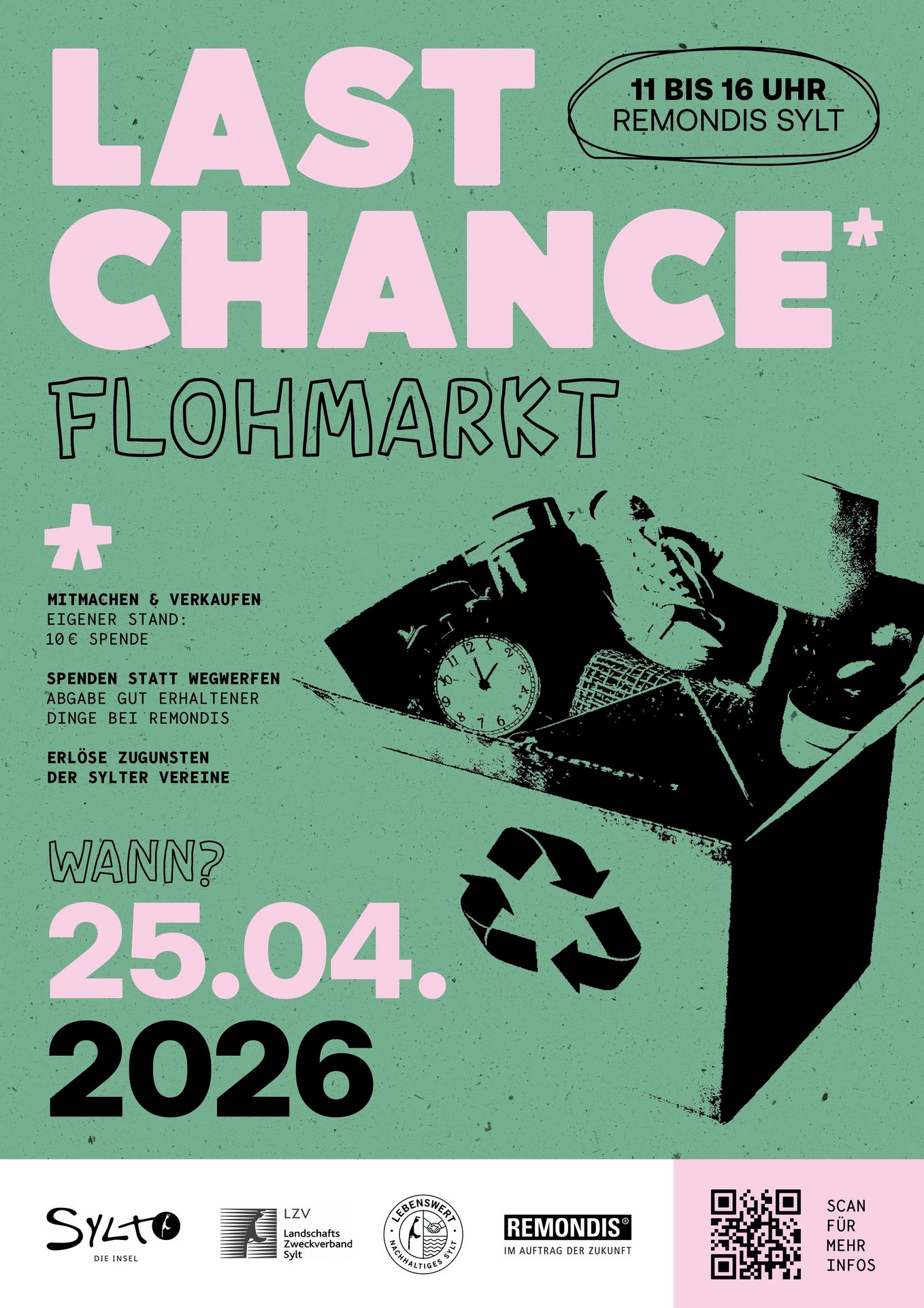 Wer die Aktion unterstützen und gut erhaltene Gegenstände weitergeben möchte, kann diese bis zum 24. April direkt bei REMONDIS Sylt vorbeibringen (ausgenommen Altkleider). Auch private Aussteller:innen sind eingeladen, sich mit einem eigenen Stand zu beteiligen. Anmeldungen sind bis zum 18. April möglich; die Standgebühr von 10 Euro wird vollständig gespendet.