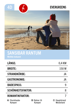 Eigentlich ist jetzt jedes Wort über die exklusivste Bretterbude weltweit geschrieben worden. Darum vielleicht das: Trotz all des Wirbels um die „Sansibar“ gehen auch die Locals gerne einmal jährlich in die Rantumer Dünen, um diesen einzigartigen gastronomischen Mix zu genießen. Und der Strand hier, der ist auch wunderbar. Joker-Faktor: Essen im Strandkorb.