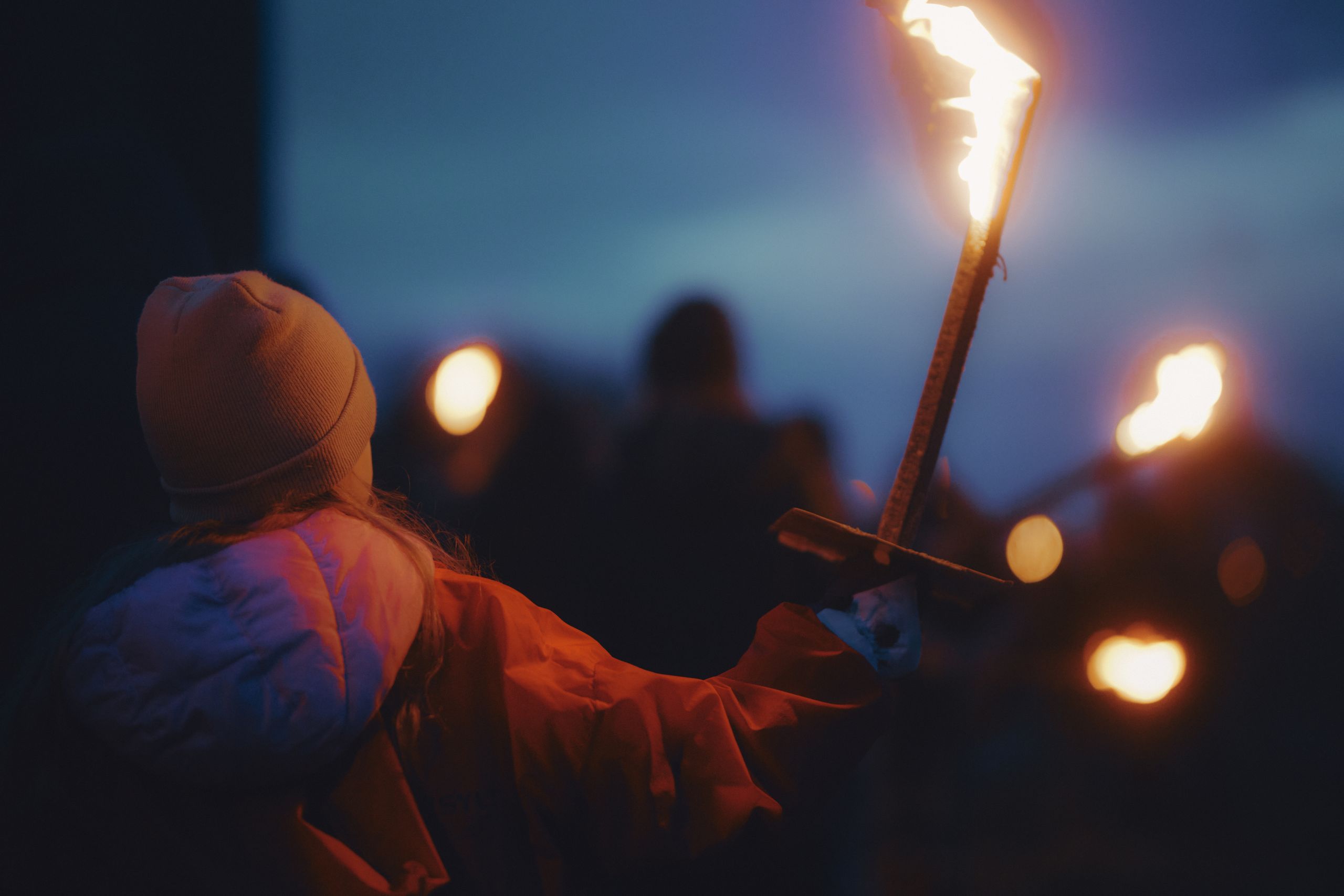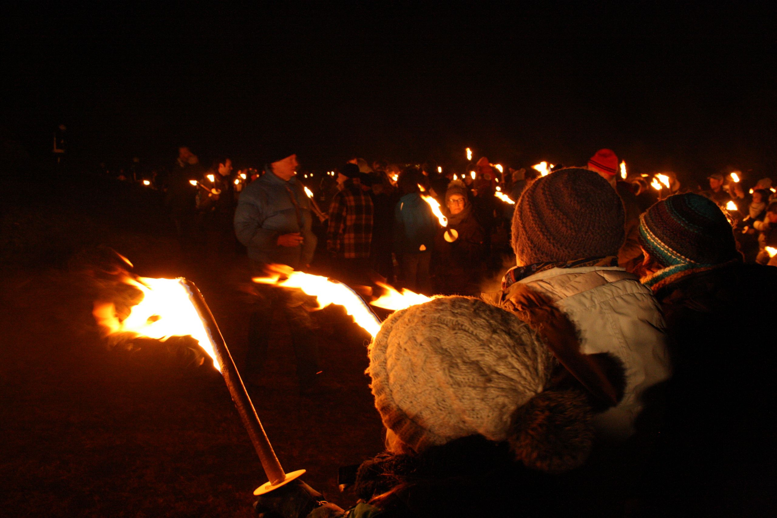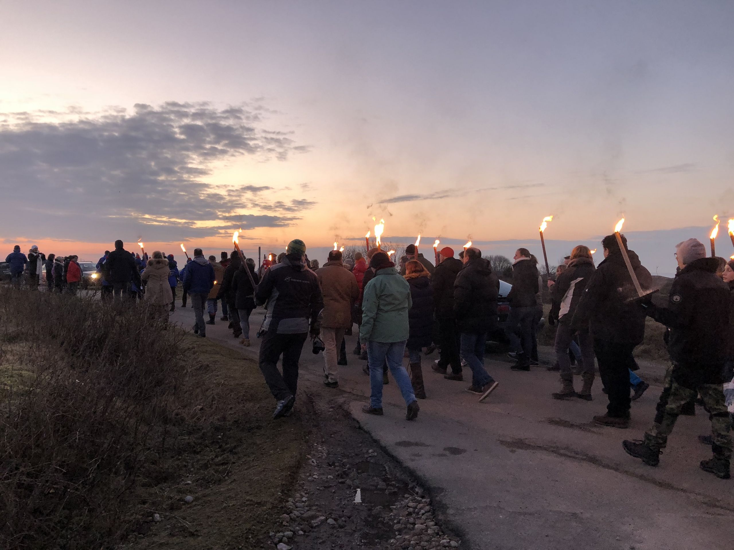 Wer das Biike-Erlebnis in vollen Zügen genießen möchte, sollte unbedingt mit einer Fackel zum Platz ziehen. Wichtig ist jedoch, den Stiel mit einer großen Pappe zu schützen, da beim Entzünden der Fackel, insbesondere bei windigem Wetter, leicht heißes Wachs heruntertropfen kann.